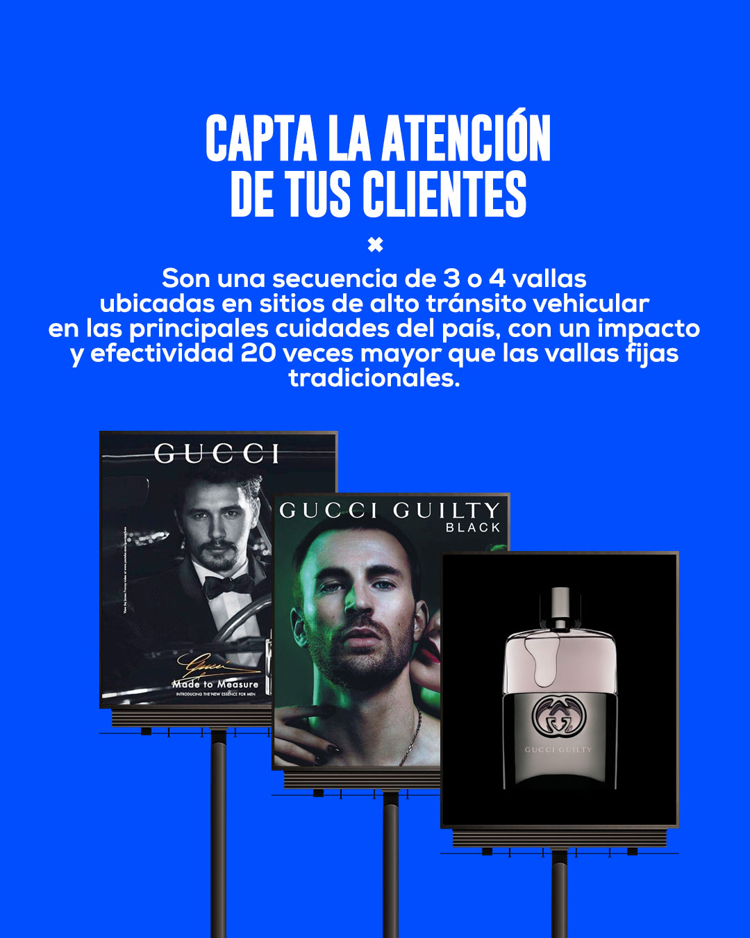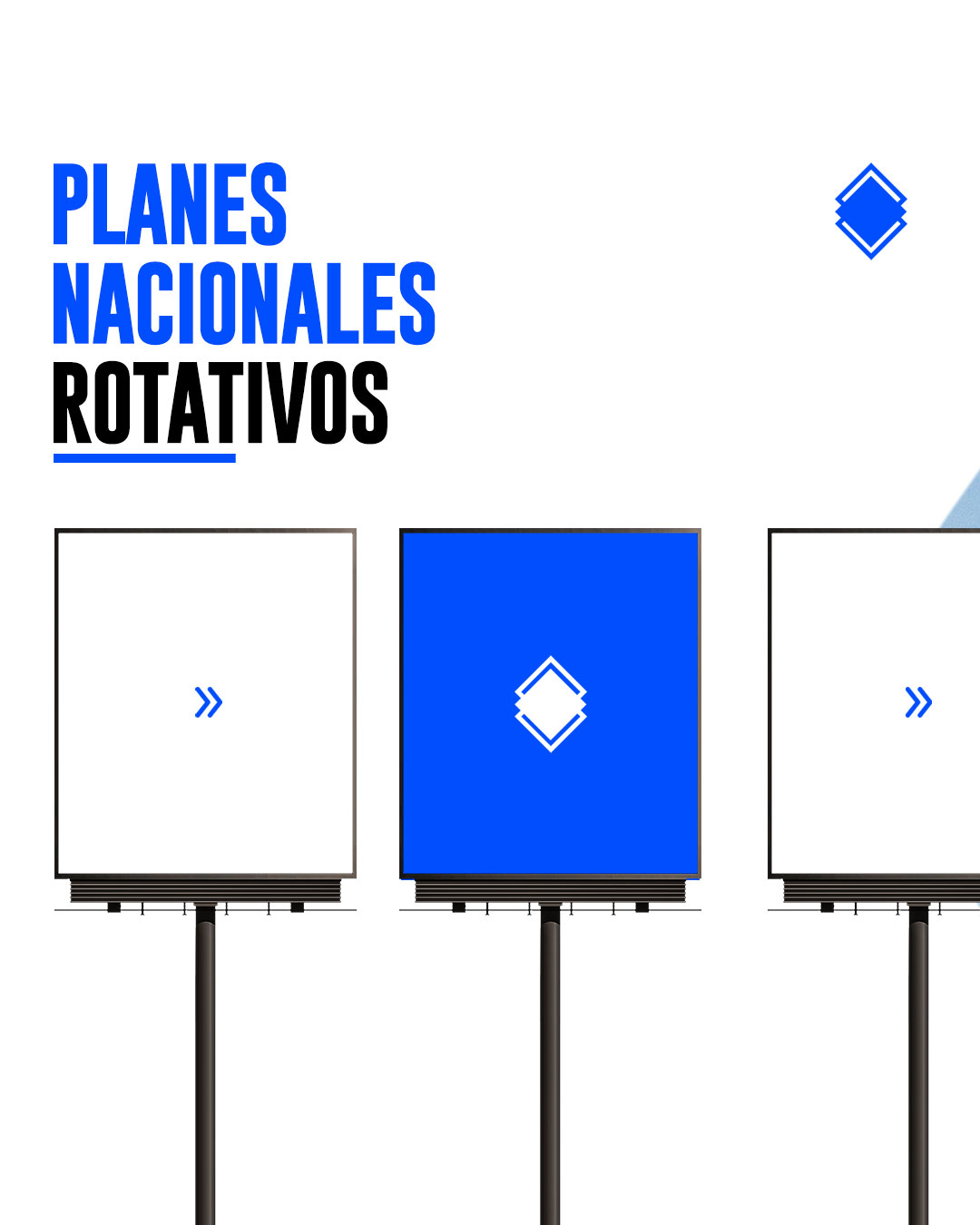 Haz que tu marca sea reconocida en todo el país, alcanzando directamente +12 MILLONES de clientes potenciales, utilizando un Plan Nacional de Vallas Rotativas sin que tu inversión se convierta en parte del paisaje.